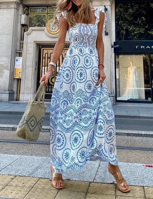 Vestido Estampado con Mangas Cortas y Bajo Fluido Ref: 0270