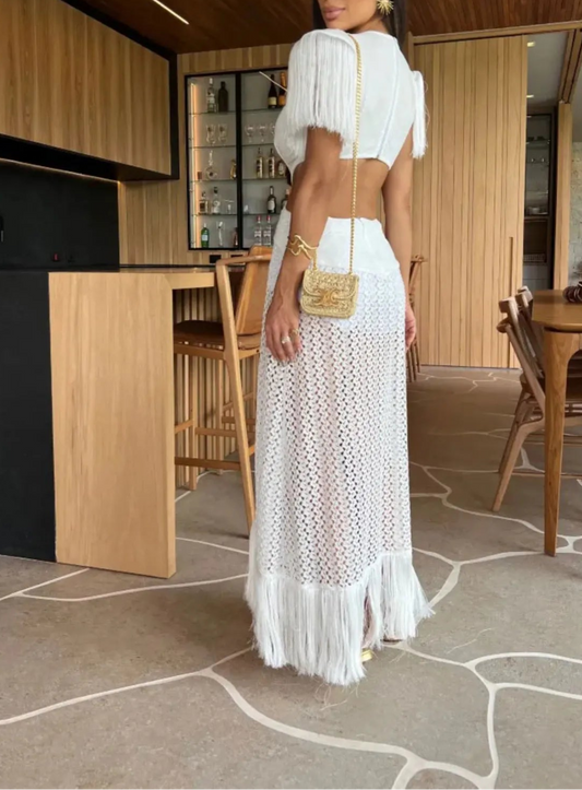Conjunto en Crochet Calado con Manga Larga y Falda Larga Ref: 0348