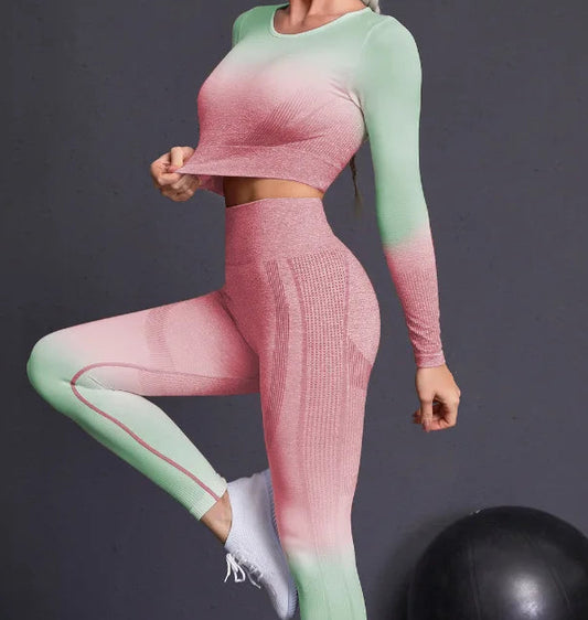 Conjunto Deportivo con Top de Manga Larga en Tul y Calza Ref: 1040