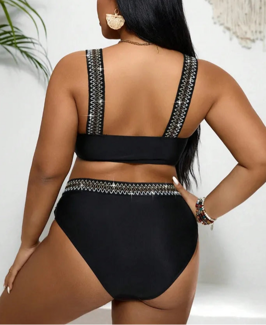 Bikini Plus Size con Tirantes Brillantes y Banda Cruzada Ref: 0650