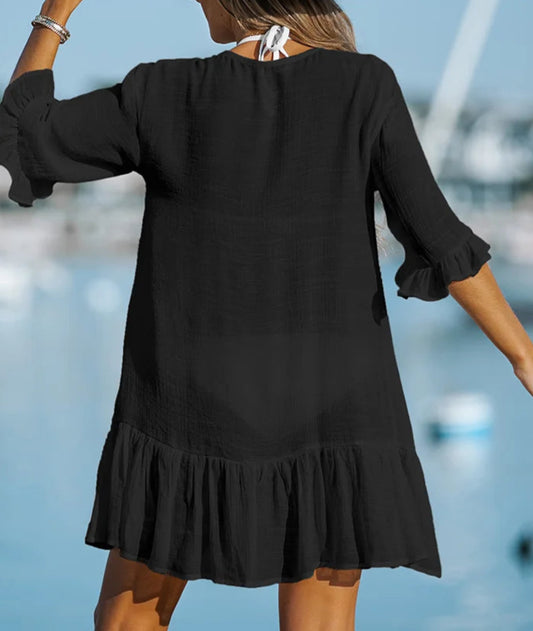 Salida de Playa Chemise con Mangas 3/4 y Bajo Fruncido Ref: 0243