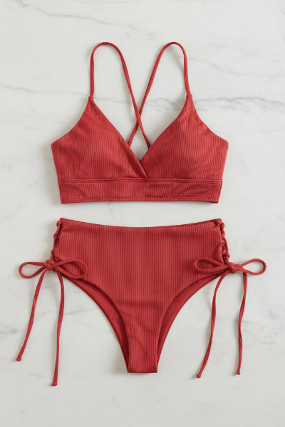Bikini con Escote Triangular, Espalda Cruzada y Ataduras Laterales Ref: 0737